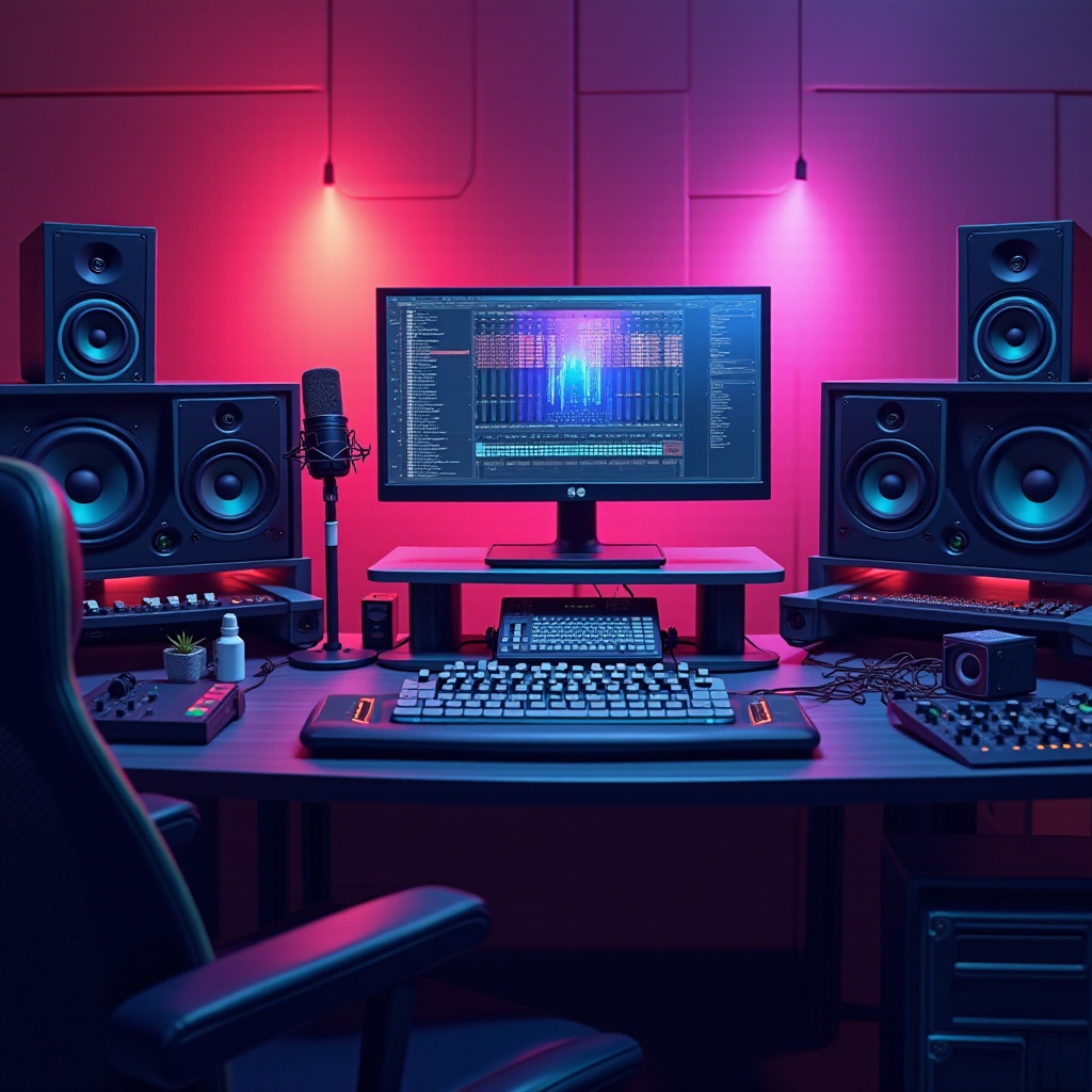 Monitor berkualitas seperti KRK dan Yamaha memastikan reproduksi audio yang akurat, penting untuk mencampur dan memaster dengan tepat.